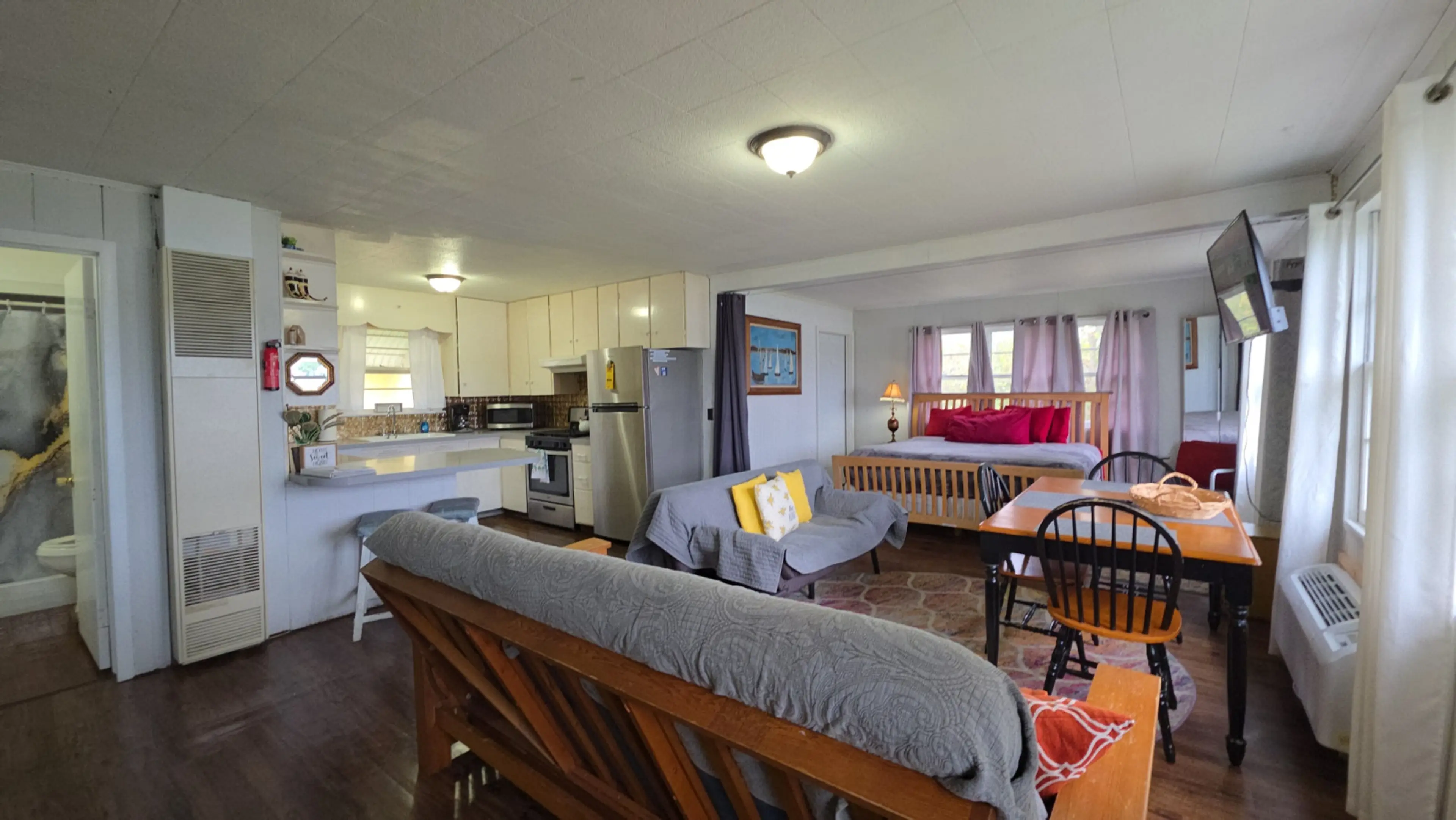 We rented two houses next door to each other for a family reunion. The houses are older cottages and not in perfect repair (some soft wood on deck steps, a loose closet door, dryer not working) but that was ok as it meant we didn’t worry about kids breaking things or needing to keep stuff perfect. The houses were mostly clean, but floors had clearly not been mopped. The beds were comfortable enough and there were plenty of them, although most were full size, so having two adults on each (as would be needed to fit as many people as the listing stated) would be pretty cozy. The owner and property manager were quick to respond to texts to answer questions.